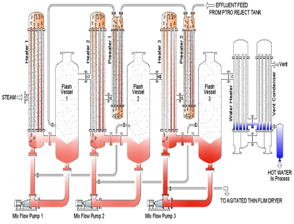 I processi termici svolgono un ruolo centrale in molti schemi ZLD. L’evaporazione comporta il riscaldamento delle acque reflue per separare il vapore acqueo dai solidi disciolti e sospesi; il vapore viene poi condensato in distillato ad alta purezza.