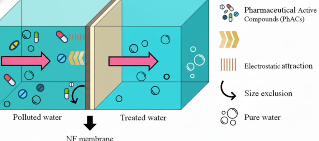 Le membrane a nanofiltrazione possono rimuovere oltre il 90% di molti farmaci. La loro efficienza è determinata da:
