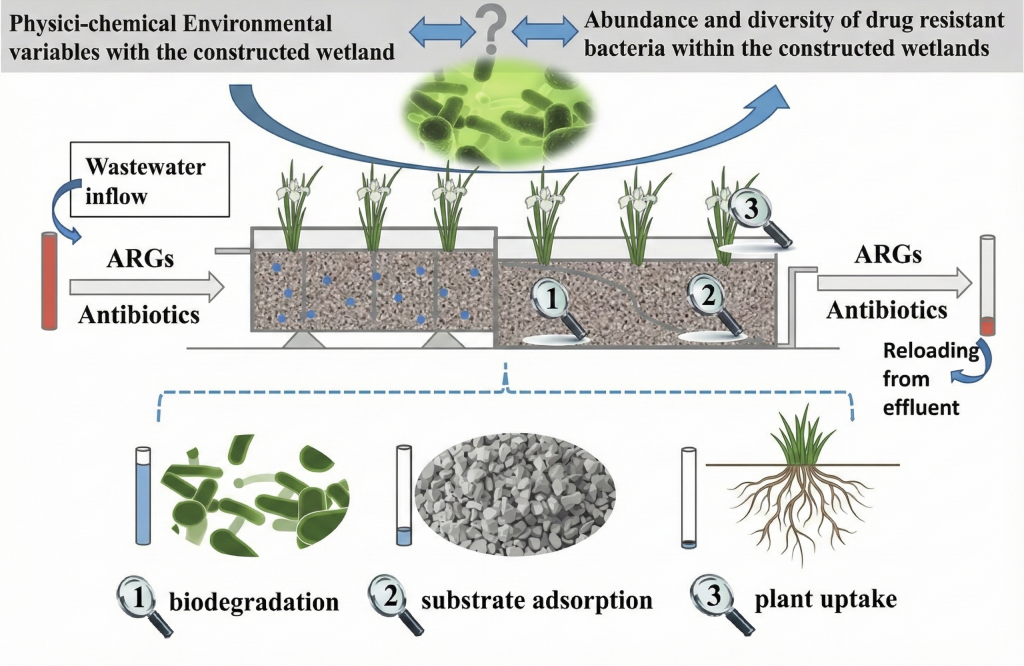 Le zone umide costruite offrono un opzione di trattamento ecologica e a basso costo. Esse combinano assorbimento da parte delle piante, attività microbica e adsorbimento nel suolo per rimuovere i farmaci.